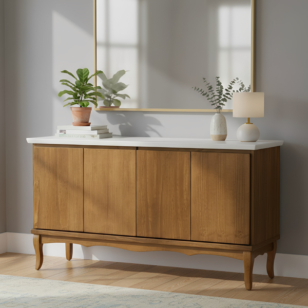 O Balcão 4 Portas com Tampo de Vidro une elegância e funcionalidade para compor sua cozinha ou sala de jantar. Com amplo espaço interno para organizar utensílios e mantimentos, ele oferece praticidade no dia a dia. O tampo de vidro adiciona um toque moderno e sofisticado ao ambiente, além de facilitar a limpeza e valorizar a decoração. Ideal para quem busca beleza, organização e durabilidade em um só móvel.