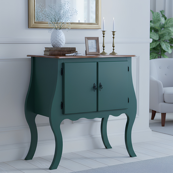 A Cômoda de Madeira com 2 Portas Bombê é uma peça versátil que une elegância, funcionalidade e design clássico. Com suas curvas suaves e estilo inspirado no mobiliário francês, ela se destaca tanto como uma charmosa cômoda para ambientes como halls, quartos e salas, quanto como uma sofisticada bancada para lavabos. Produzida em madeira de alta qualidade, possui acabamento refinado e excelente durabilidade. Seu espaço interno, acessado por duas portas, é ideal para armazenar itens diversos com praticidade e organização. No lavabo, ela pode ser facilmente adaptada para acomodar cuba e metais, criando um ambiente elegante e cheio de personalidade. Combinando beleza e utilidade, essa peça é perfeita para quem busca um toque clássico na decoração, sem abrir mão da funcionalidade.