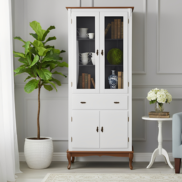A Cristaleira de Madeira 4 Portas 1 Gaveta 3 Prateleiras Pés Luiz XV 1086 é a peça perfeita para quem busca sofisticação e funcionalidade na decoração de sua casa. Com um design inspirado no elegante estilo Luiz XV, esta cristaleira é ideal para armazenar e exibir seus objetos de valor, como cristais, porcelanas e outros itens decorativos. Composta por 4 portas de vidro, ela proporciona visibilidade para suas peças mais especiais, enquanto a gaveta oferece um espaço prático para guardar utensílios menores, como talheres ou acessórios de mesa. As 3 prateleiras internas são ideais para organizar sua coleção de forma eficiente, enquanto os pés Luiz XV adicionam um toque de luxo e classe ao ambiente.