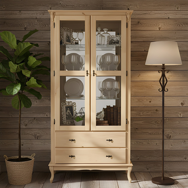 A Cristaleira Sevilha 1095-E combina elegância e funcionalidade. Com duas portas de vidro, três prateleiras de vidro e fundo espelhado, ela exibe suas coleções com sofisticação. As duas gavetas oferecem praticidade para guardar itens pequenos. Os pés Luiz XV adicionam um toque clássico e atemporal, enquanto a madeira de alta qualidade garante durabilidade e resistência.