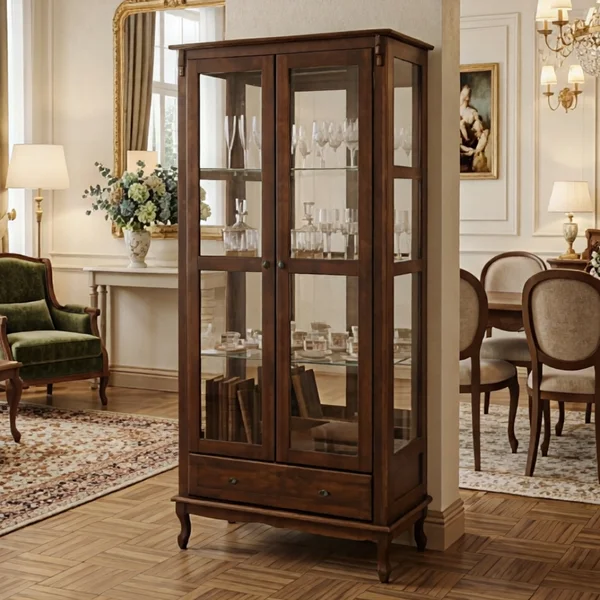A Cristaleira com Espelho 2 Portas 3 Prateleiras de Vidro 1 Gaveta Pés Luiz XV é uma peça elegante e sofisticada, ideal para exibir suas coleções com estilo. As três prateleiras de vidro e o fundo espelhado criam uma exibição deslumbrante, enquanto as duas portas de vidro protegem seus itens. A gaveta oferece praticidade para armazenamento, e os pés Luiz XV conferem um charme clássico e atemporal. Feita em madeira de alta qualidade, combina beleza, funcionalidade e durabilidade.