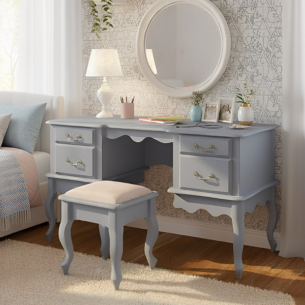 A Escrivaninha Princesa com Pés Luiz XV é um móvel elegante, com um design inspirado no estilo clássico francês. Ela possui uma estrutura em madeira de alta qualidade, com detalhes refinados que conferem um toque de sofisticação ao ambiente. Com os pés no estilo Luís XV, curvados e ornamentados, a escrivaninha traz um ar de delicadeza e charme. Seu acabamento é liso e polido, proporcionando um visual refinado e agradável ao toque. Além disso, oferece amplo espaço para organização, sendo perfeita para ambientes de trabalho ou estudo, sem abrir mão da beleza e funcionalidade. Você já tem algum lugar específico em mente para ela?