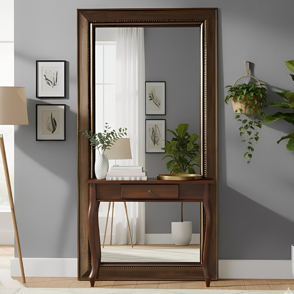 O espelho com moldura de madeira maciça e acabamento em gesso é uma peça que une resistência, elegância e um toque clássico. Produzido com madeira de alta qualidade, ele oferece durabilidade e um visual imponente, enquanto os detalhes em gesso trazem sofisticação e charme artesanal. Ideal para compor ambientes como salas, quartos, halls ou lavabos, esse espelho se adapta tanto a estilos modernos quanto tradicionais, valorizando o espaço com amplitude, luz e um acabamento refinado que faz toda a diferença na decoração.