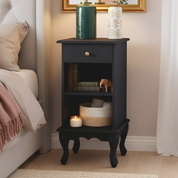 A Mesa de Cabeceira com Gaveta e Nicho Pés Luiz XV é a escolha perfeita para quem busca elegância e praticidade em um único móvel. Inspirada no estilo clássico Luiz XV, ela combina detalhes refinados, como os pés curvados, com a funcionalidade moderna de gaveta e nicho, criando uma peça que é ao mesmo tempo sofisticada e útil. A gaveta oferece espaço para armazenar seus objetos pessoais de forma discreta, enquanto o nicho aberto é ideal para itens de fácil acesso, como livros, eletrônicos ou objetos decorativos. A estrutura robusta e o acabamento cuidadoso garantem a durabilidade da peça, que se destaca pelo charme e pelo design atemporal. Com os pés Luiz XV, a mesa traz um toque de luxo e elegância, tornando-se o ponto focal do ambiente. A Mesa de Cabeceira com Gaveta e Nicho Pés Luiz XV é perfeita para quem deseja unir beleza, funcionalidade e estilo clássico no quarto, criando um ambiente sofisticado e acolhedor.