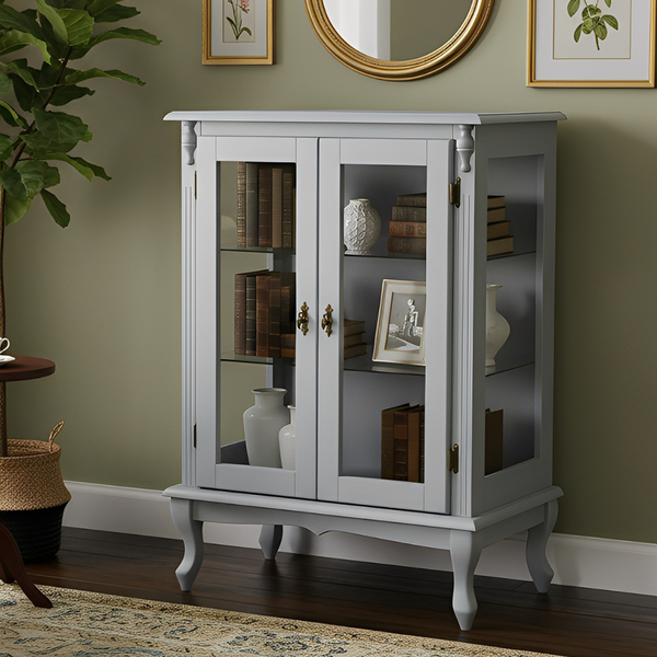 A Cristaleira de Madeira 1055 é uma peça elegante que combina sofisticação e funcionalidade, ideal para quem busca um toque clássico na decoração. Com duas portas e duas prateleiras internas, oferece amplo espaço para armazenamento e exibição de itens decorativos. As laterais de vidro garantem visibilidade aos objetos, enquanto os pés no estilo Luiz XV conferem um charme refinado e atemporal ao móvel. Perfeita para salas de jantar ou estar, essa cristaleira agrega beleza e elegância ao seu ambiente, tornando-o ainda mais acolhedor e sofisticado.