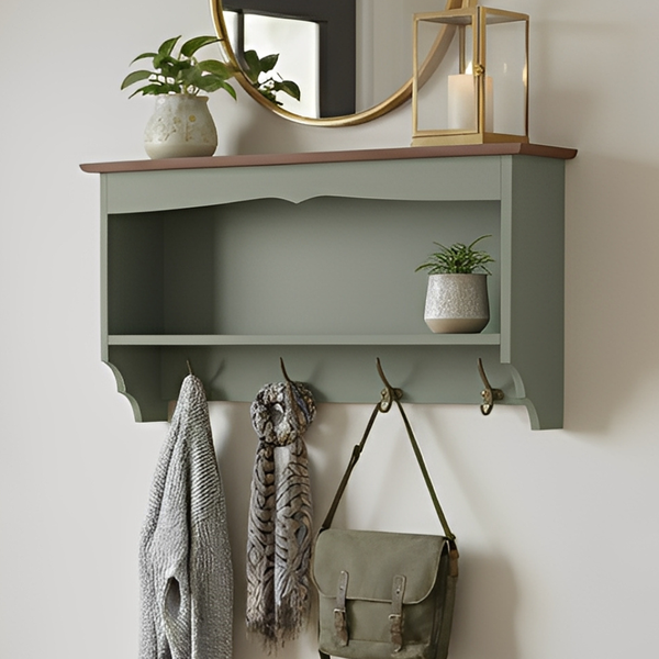 A Prateleira de Madeira Multiuso com Ganchos é perfeita para unir decoração e praticidade em qualquer ambiente da casa. Feita em madeira de qualidade, oferece espaço para organizar objetos decorativos, utensílios ou acessórios, enquanto os ganchos inferiores são ideais para pendurar chaves, bolsas, panos de prato e muito mais. Um toque funcional e charmoso para sua parede.