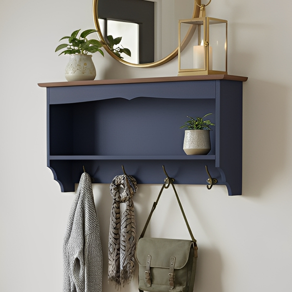 A Prateleira de Madeira Multiuso com Ganchos é perfeita para unir decoração e praticidade em qualquer ambiente da casa. Feita em madeira de qualidade, oferece espaço para organizar objetos decorativos, utensílios ou acessórios, enquanto os ganchos inferiores são ideais para pendurar chaves, bolsas, panos de prato e muito mais. Um toque funcional e charmoso para sua parede.