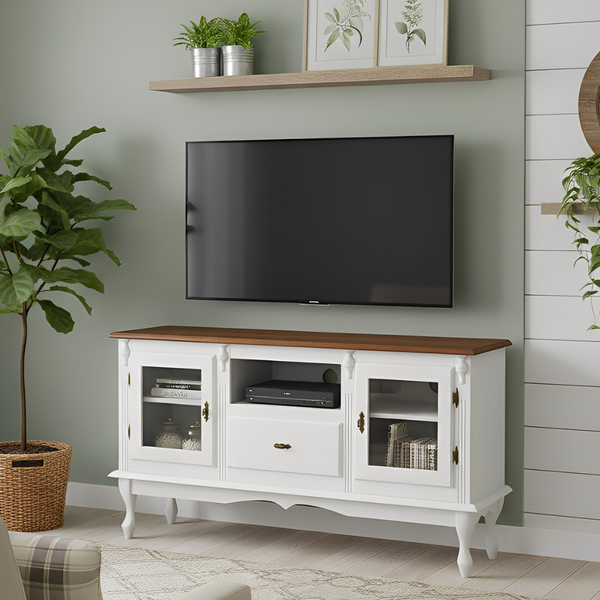 O Rack 2 Portas, 1 Gaveta e Nicho com Pés Luiz XV 1036 é uma peça que combina sofisticação e funcionalidade para a sua sala de estar. Com design elegante inspirado no estilo clássico Luiz XV, ele oferece dois compartimentos com portas, uma gaveta para armazenamento adicional e um nicho central ideal para aparelhos eletrônicos ou itens decorativos. Seus pés em estilo Luis XV conferem um toque de requinte, enquanto o acabamento de alta qualidade garante durabilidade e resistência. Este rack é a opção perfeita para quem deseja aliar praticidade e um toque atemporal de elegância ao ambiente.