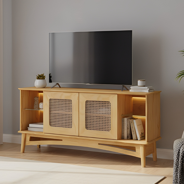 O Rack para TV Veneza 6007 é a escolha perfeita para quem busca aliar sofisticação e funcionalidade em sua sala de estar. Fabricado em madeira de alta qualidade, este móvel oferece resistência e durabilidade, sendo ideal para acomodar sua TV e diversos equipamentos eletrônicos. As 2 portas em rattan adicionam um toque de charme, enquanto as 2 prateleiras de vidro proporcionam espaço extra para armazenar aparelhos, livros ou objetos decorativos, mantendo tudo de forma organizada e acessível. Seu design elegante e clean permite que se adapte facilmente a diferentes estilos de decoração, desde os mais clássicos aos mais modernos. Com acabamento impecável e grande praticidade, o Rack Veneza 6007 é a solução ideal para transformar seu ambiente com beleza e eficiência.